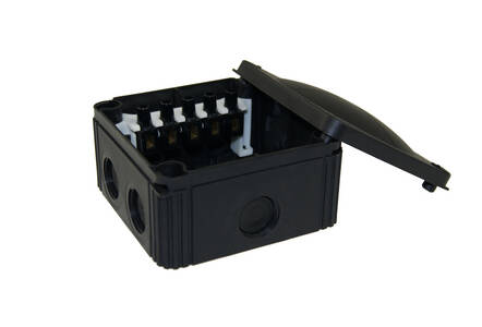 WISKA – Junction Box 100x110x66mm, IP66/IP67, Black – with 5pole 6.0mm² Terminal Block